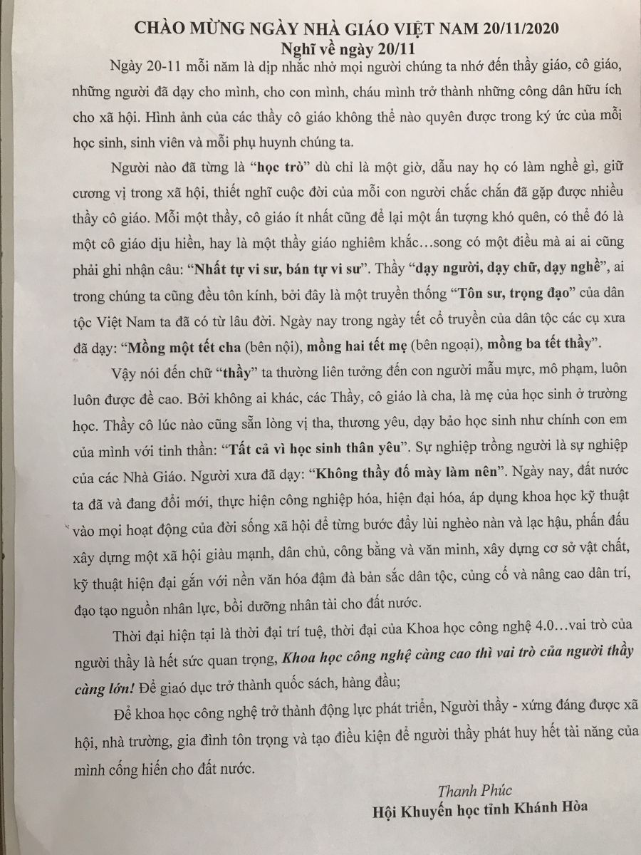CHÀO MỪNG NGÀY NHÀ GIÁO VIỆT NAM 20/11/2020