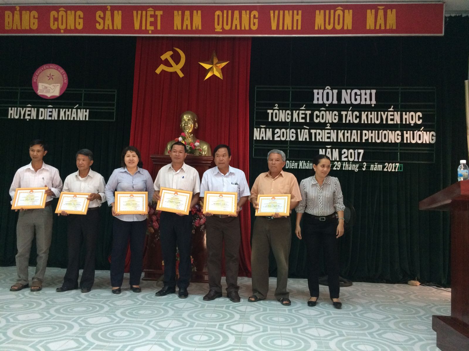 HỘI KHUYẾN HỌC HUYỆN DIÊN KHÁNH TỔ CHỨC HỘI NGHỊ TỔNG KÊT CÔNG TÁC KHUYẾN HỌC NĂM 2016 Được sự thống nhất của Thường trực Huyện ủy và UBND huyện, chiều ngày 29/3/2017, tại hội trường Ủy ban Mặt trận Tổ quốc Việt Nam huyện, Hội Khuyến học huyện Diên Khánh đã tổ chức hội nghị tổng kết công tác khuyến học, khuyến tài và xây dựng bốn mô hình học tập trong năm 2016 và triển khai phương hướng hoạt động trong năm 2017.