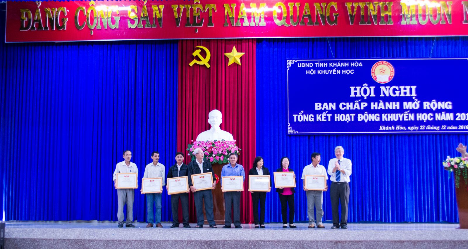 Hội Khuyến học tỉnh Khánh Hòa tổ chức Hội nghị tổng kết khuyến học năm 2016 Sáng ngày 22/12/2016, Hội Khuyến học tỉnh Khánh Hòa đã tổ chức Hội nghị Tổng kết hoạt động Khuyến học năm 2016. Đến tham dự Hội nghị, có hơn 150 đại biểu và thành viên thuộc các Hội Khuyến học trên địa bàn tỉnh Khánh Hòa.