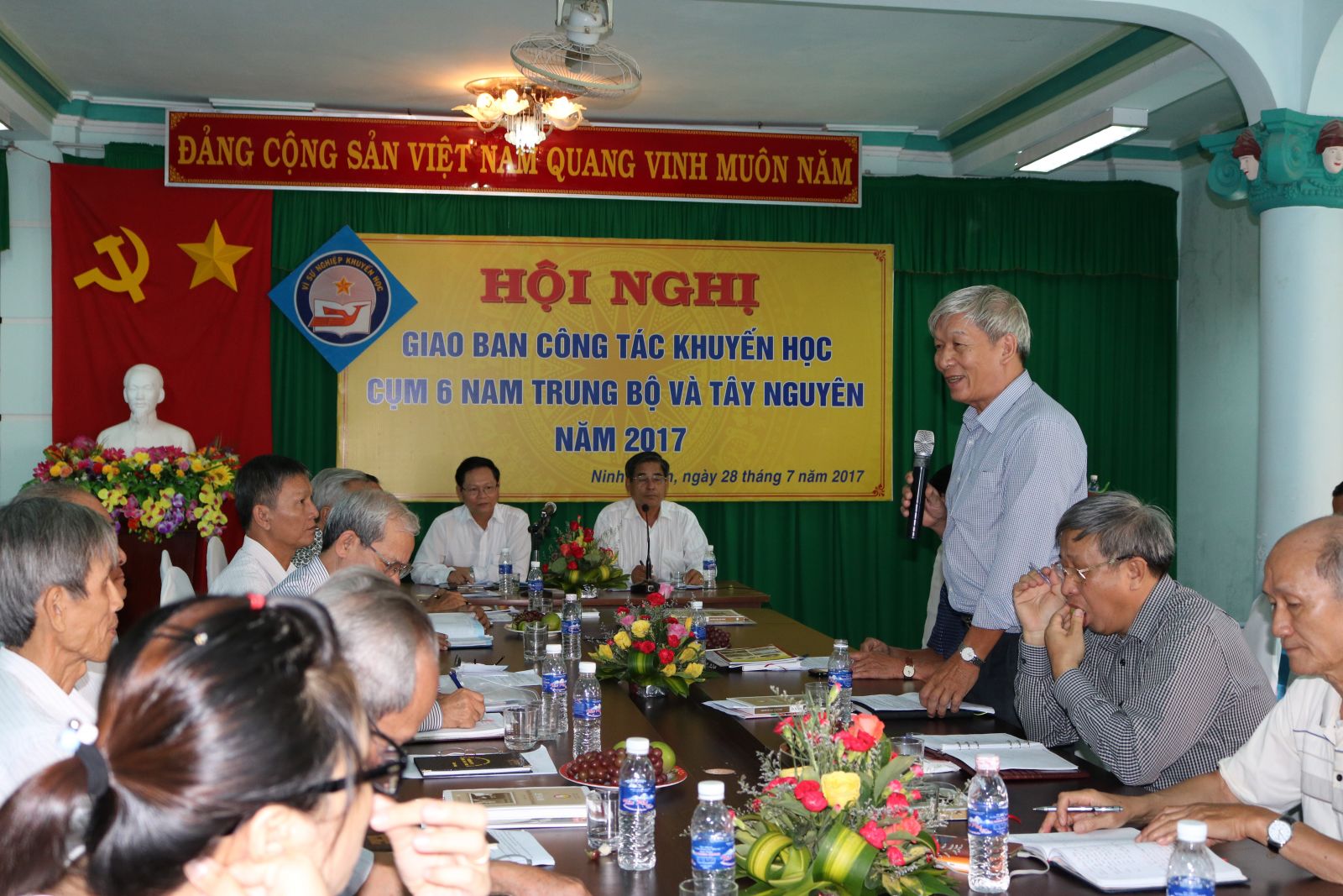 Họp giao ban cụm 6 các Hội Khuyến học thuộc tỉnh Miền Trung và Tây Nguyên tại Ninh Thuận Sáng ngày 28/7/2017 vừa qua, Hội Khuyến học tỉnh Khánh Hòa đã về tham dự họp giao ban cụm 6 các tỉnh Miền Trung và Tây Nguyên tại tỉnh Ninh Thuận. Trong cuộc họp, có các đại diện, lãnh đạo từ các Hội Khuyến học thuộc các tỉnh Miền Trung - Tây Nguyên. Cuộc họp nhằm đánh giá, sơ kết tình hình hoạt động công tác khuyến học, khuyến tài, xây dựng xã hội học tập của các tỉnh Hội trong 6 tháng đầu năm 2017, đồng thời đưa ra biện pháp, phương hướng hoạt động mới trong 6 tháng cuối năm 2017.