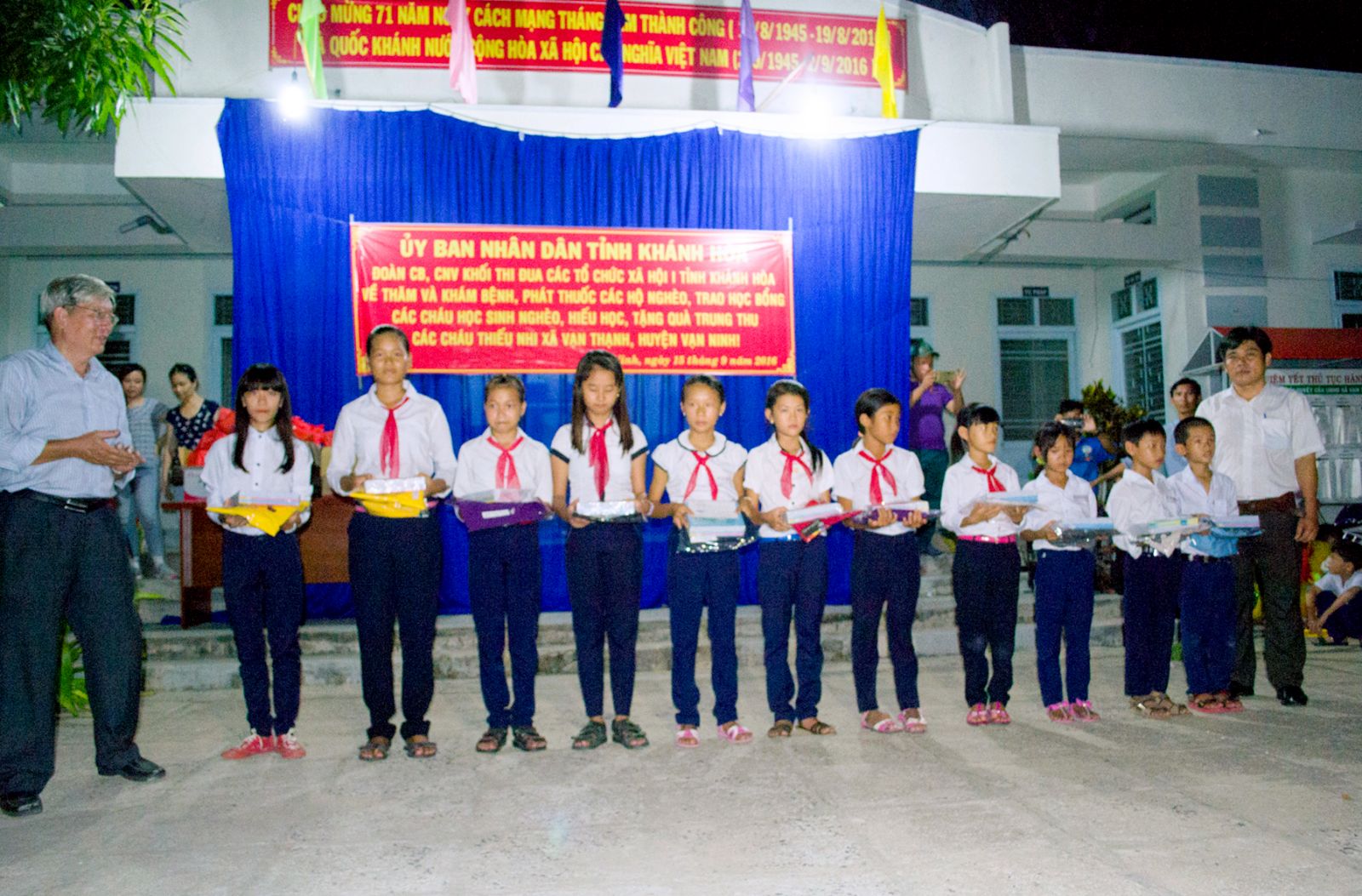Khối TĐ TCXH I tổ chức công tác khám, chữa bệnh, phát thuốc, trao quà và tổ chức trung thu cho các em ngoài xã đảo Vạn Thạnh, huyện Vạn Ninh Sáng ngày 15/9, Các đơn vị thuộc Khối thi đua các tổ chức xã hội I tổ chức chương trình công tác ngoại khóa với mục đích khám, chữa bệnh, phát thuốc, trao quà và tổ chức đêm trung thu cho người dân và trẻ em tại xã đảo Vạn Thạnh, huyện Vạn Ninh, Khánh Hòa.