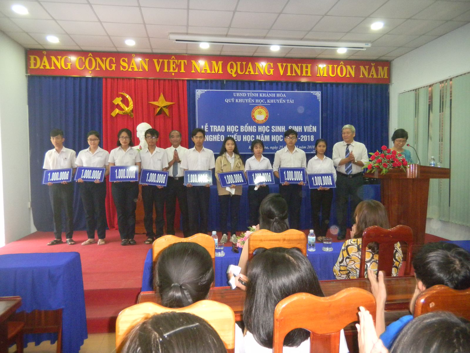 QUỸ KHKT TRAO HỌC BỔNG TỚI 344 HỌC SINH, SINH VIÊN NGHÈO HIẾU HỌC NĂM 2018 Được sự quan tâm của Tỉnh ủy, UBND tỉnh, ngày 26/4/2012 Chủ tịch UBND tỉnh Khánh Hòa đã có Quyết định số 1080/QĐ-CTUBND về việc cấp giấy phép thành lập Quỹ Khuyến học, khuyến tài Khánh Hòa.