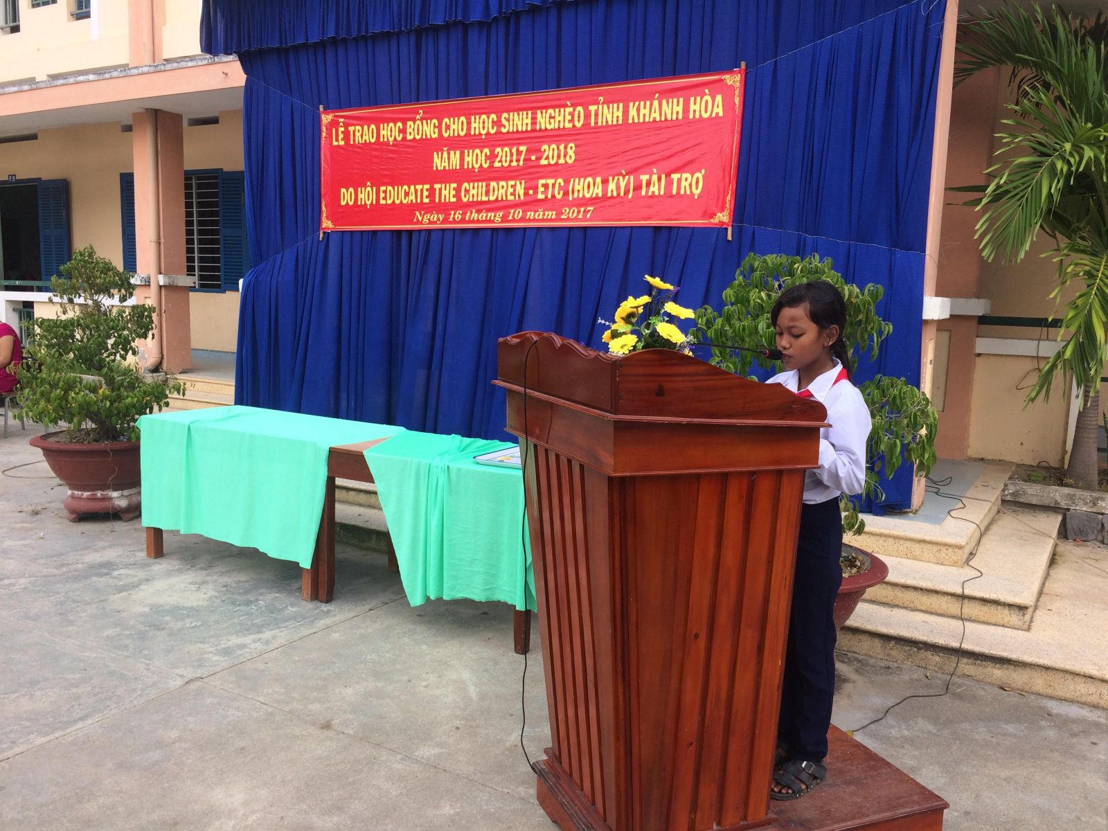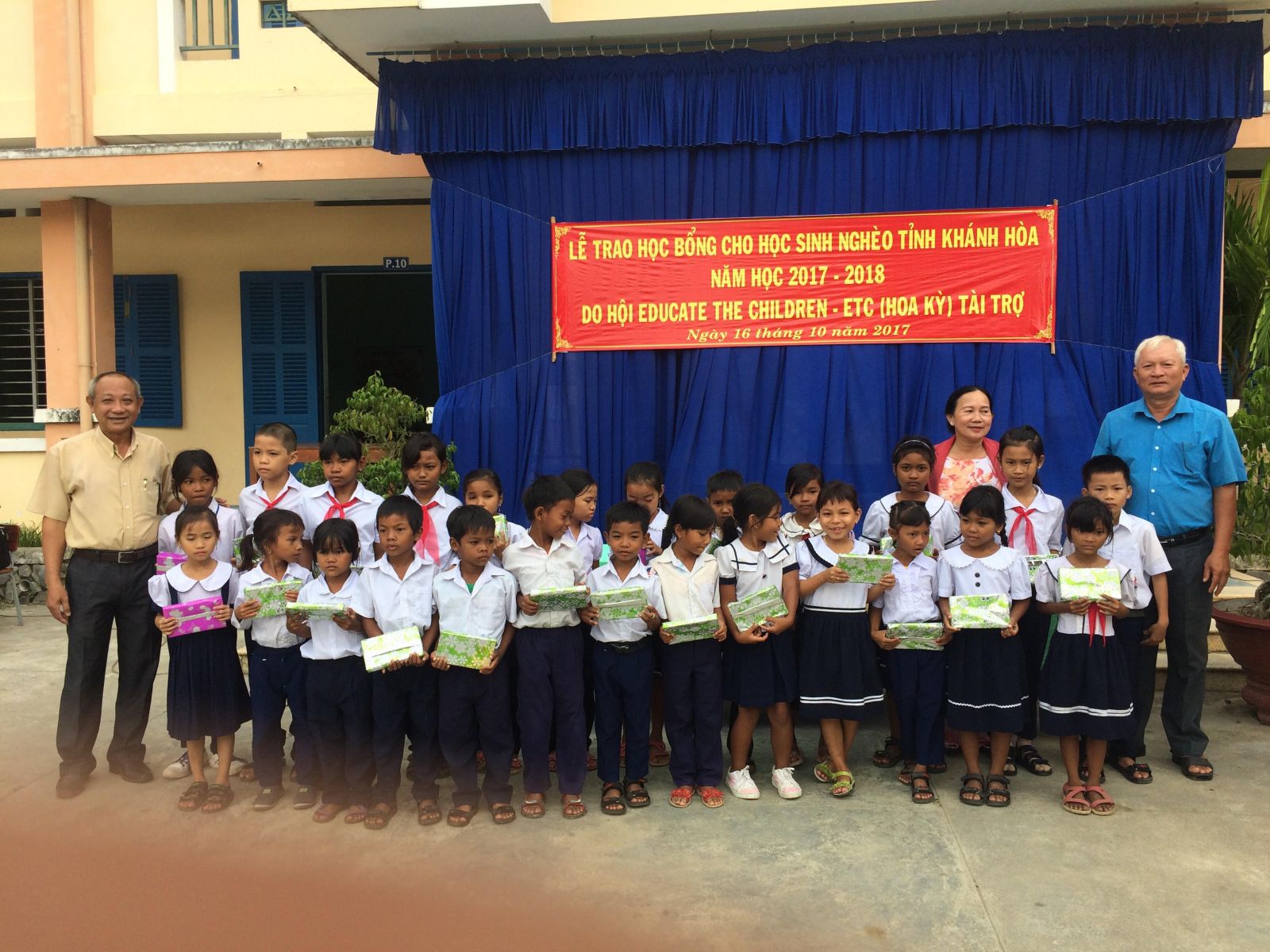 TRAO HỌC BỔNG CHO HỌC SINH NGHÈO , HỌC SINH DÂN TỘC TẠI TRƯỜNG TH -THCS DIÊN TÂN NĂM HỌC 2017 - 2018 Được sự đồng thuận của lãnh đạo Phòng Giáo dục - Đào tạo, sáng ngày 16/10/2017, tổ chức Hội Educate the children –ETC ( Hoa Kỳ ) tài trợ phối hợp với trường TH - THCS Diên Tân, huyện Diên Khánh trao học bổng cho các em học sinh nghèo, học sinh dân tộc đang học tiểu học trên địa bàn xã Diên Tân.